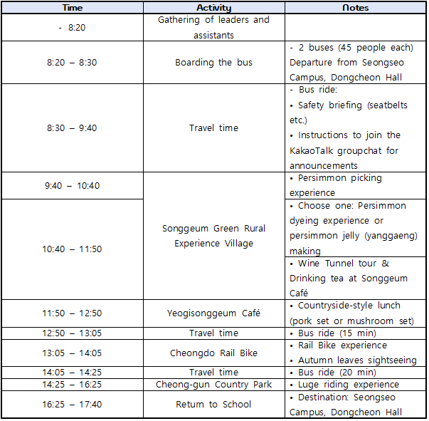 Time: 08:20 – 17:40 (Departing from Dongcheon Hall)
